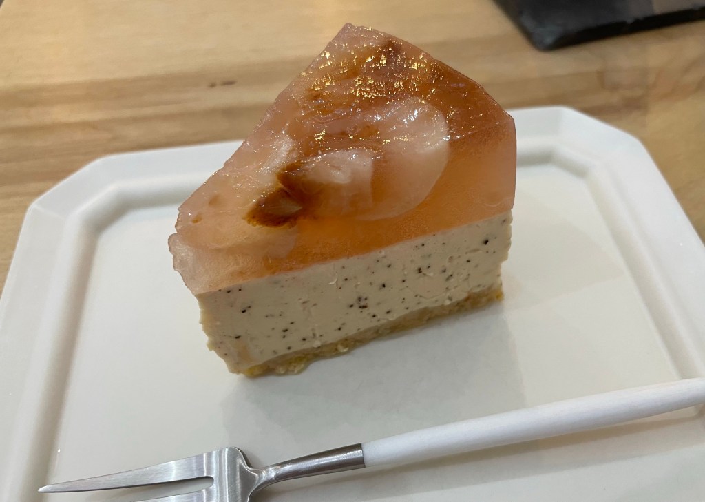 私が頼んだのは桃とアールグレイのクリームチーズケーキです。